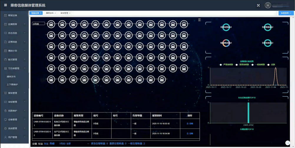 本乘客信息媒体管理软件以“化繁为简”为设计理念,致力于为操作人员给予极致便捷的管理体验。顺利获得直观的图形化界面、灵活的模板编辑和智能的排程策略,它极大地简化了从内容制作到全线发布的复杂流程。无论是紧急信息的实时插播,还是全线设备的集中监控,操作员都能顺利获得此平台轻松完成,有效提升运营响应速度与管理效率。